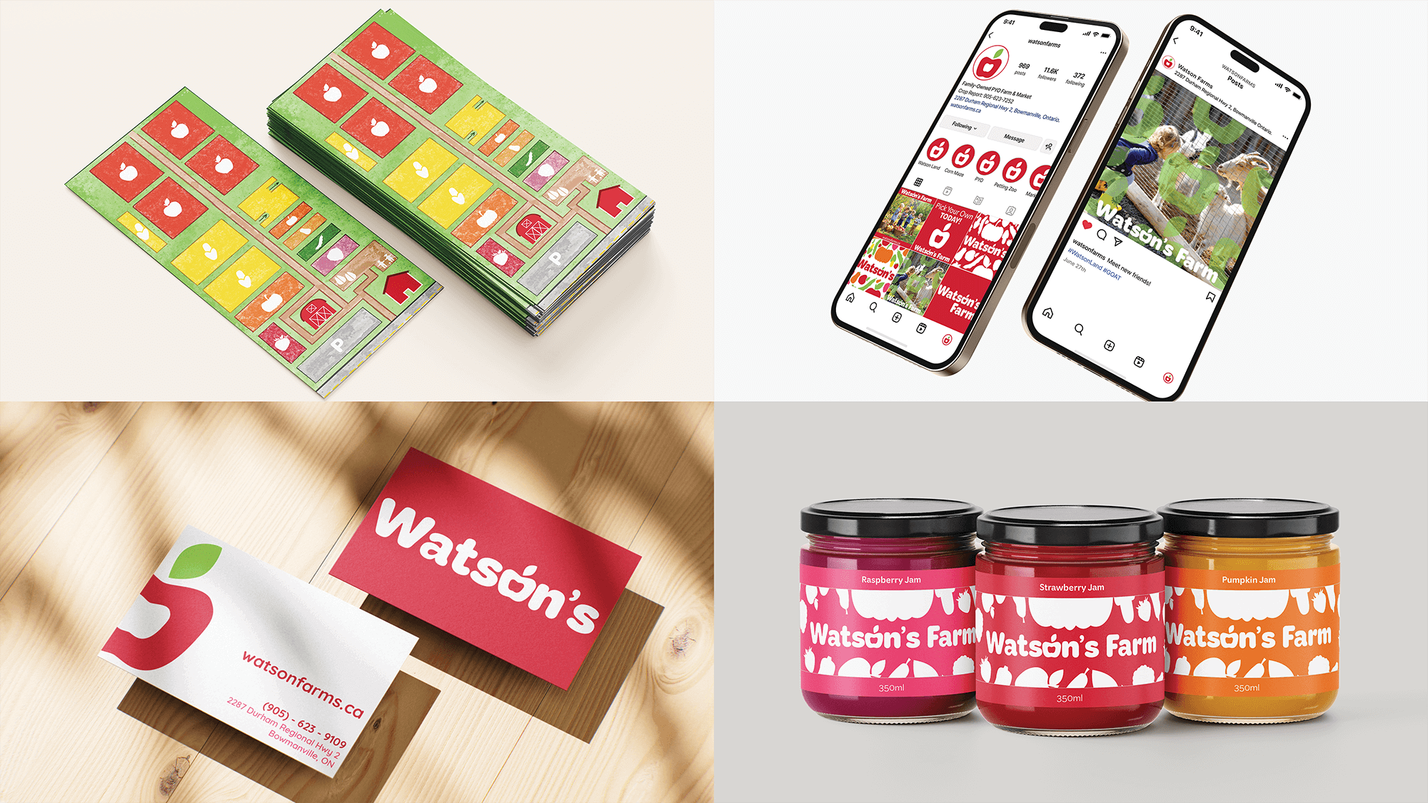 Watson's Farm is a beloved Pick-Your-Own destination in Bowmanville, Ontario, but its branding and on-site experience no longer reflected the energy of the farm today. This mock academic project reimagines Watson's though a refreshed visual identity, wayfinding system, and product design, creating a clearer, more joyful experience for families at every step of their visit.