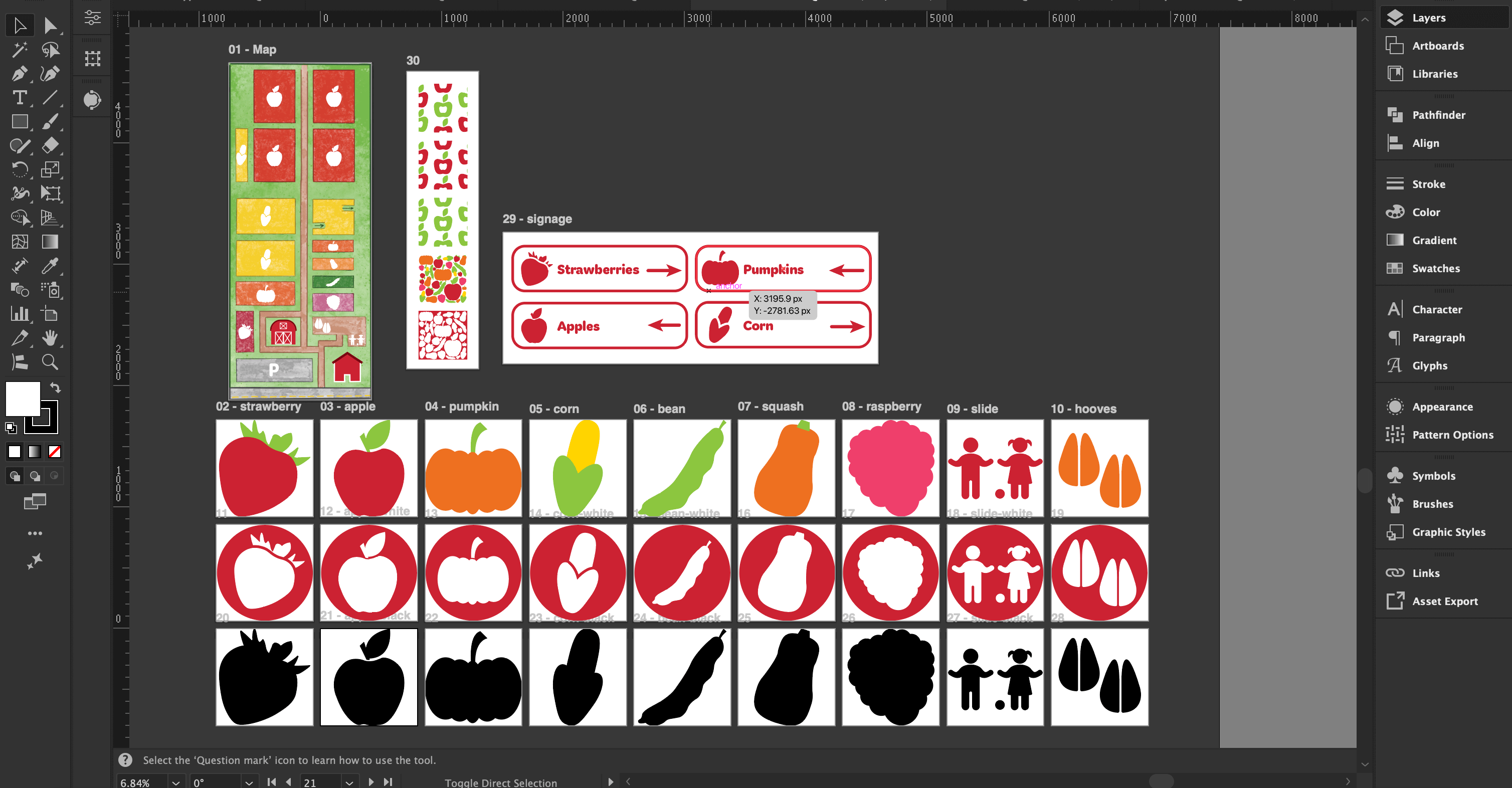 Wayfinding was a major focus of this project. I designed signage, icons, and maps that help visitors feel confident moving through the farm, especially during busy Pick-Your-Own seasons.